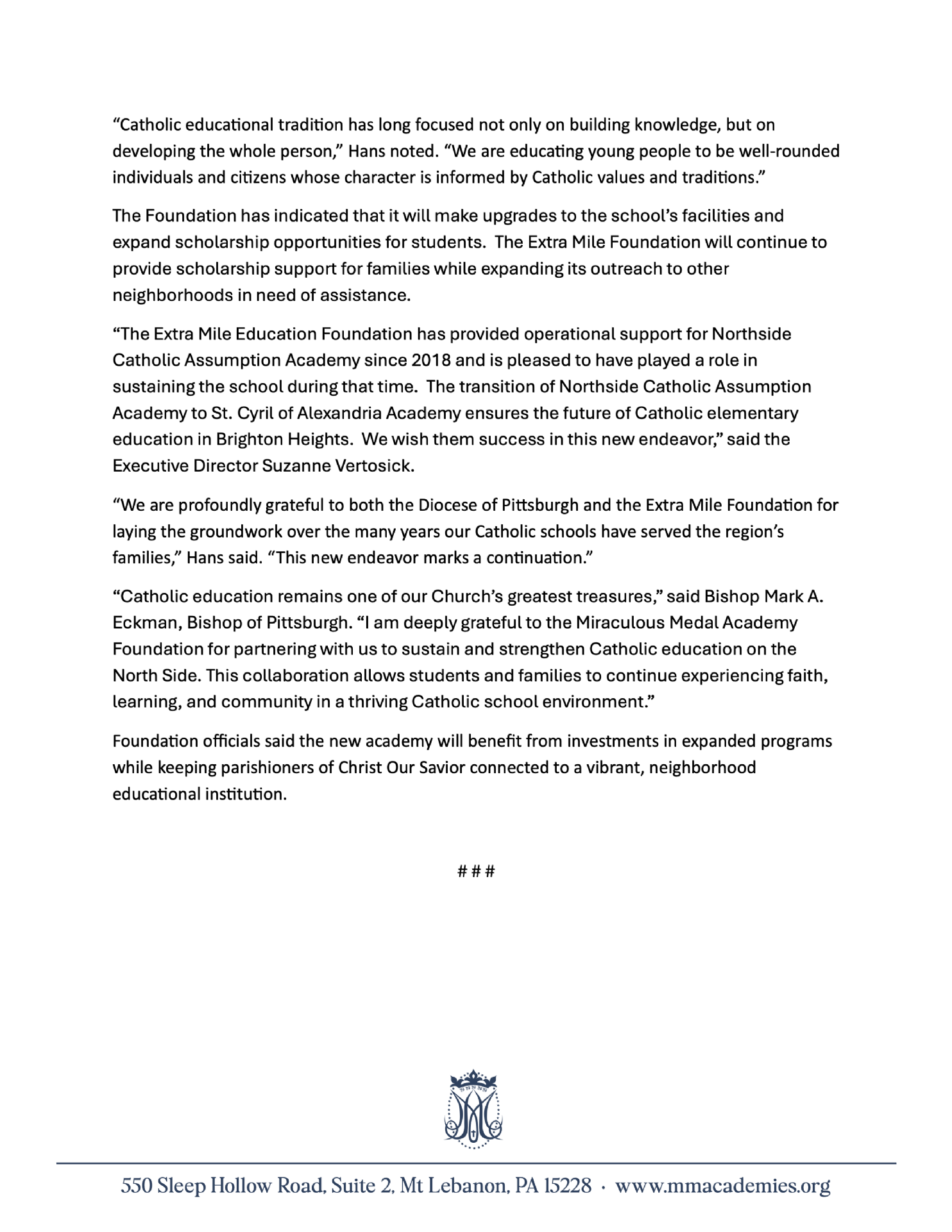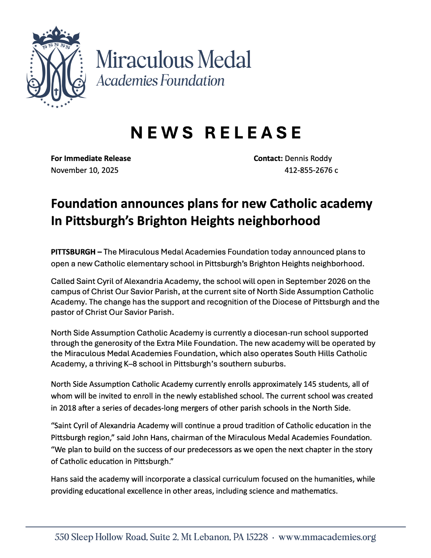 If you would like more information about South Hills Catholic Academy, please reach out through our Contact page.